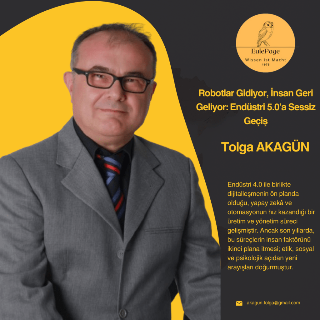 Endüstri 4.0 ile birlikte dijitalleşmenin ön planda olduğu, yapay zekâ ve otomasyonun hız kazandığı bir üretim ve yönetim süreci gelişmiştir. Ancak son yıllarda, bu süreçlerin insan faktörünü ikinci plana itmesi; etik, sosyal ve psikolojik açıdan yeni arayışları doğurmuştur. Bu bağlamda ortaya çıkan Endüstri 5.0 kavramı, insan merkezli bir teknoloji kullanımını öne çıkarmaktadır. Bu yazı, Endüstri 5.0’a geçiş sürecini değerlendirirken, insan-makine etkileşimini, etik ve toplumsal boyutları ile ele almaktadır.