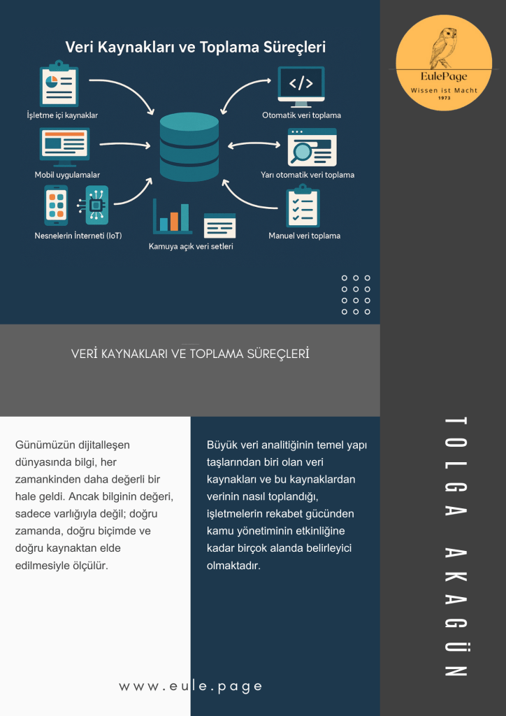 Günümüzün dijitalleşen dünyasında bilgi, her zamankinden daha değerli bir hale geldi. Ancak bilginin değeri, sadece varlığıyla değil; doğru zamanda, doğru biçimde ve doğru kaynaktan elde edilmesiyle ölçülür. Büyük veri analitiğinin temel yapı taşlarından biri olan veri kaynakları ve bu kaynaklardan verinin nasıl toplandığı, işletmelerin rekabet gücünden kamu yönetiminin etkinliğine kadar birçok alanda belirleyici olmaktadır.