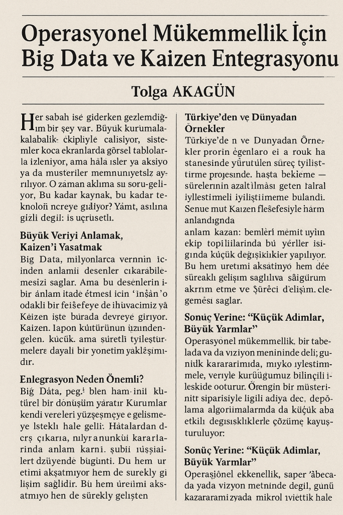 Operasyonel Mükemmellik İçin Big Data ve Kaizen Entegrasyonu