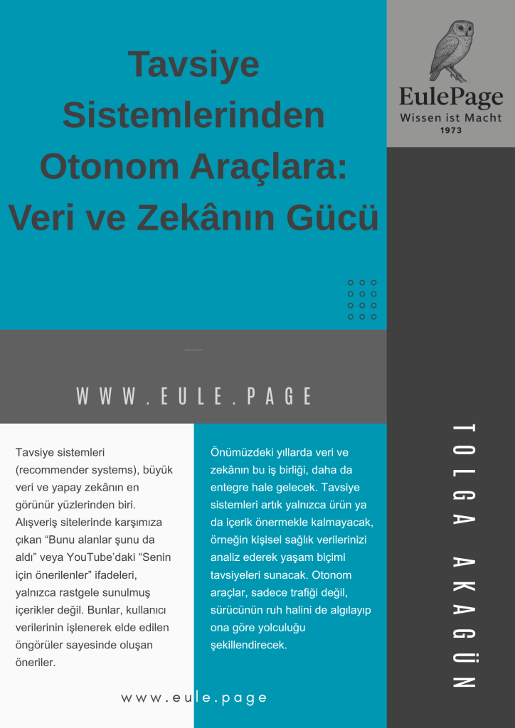 Tavsiye sistemleri ile otonom araçlar arasında görünürde büyük bir fark varmış gibi görünebilir. Biri dijital alışkanlıklarımızı yönlendiriyor, diğeri ise fiziksel dünyada hareketimizi. Ancak ikisini birbirine bağlayan temel unsur, “veri ile güçlendirilmiş yapay zekâ”.