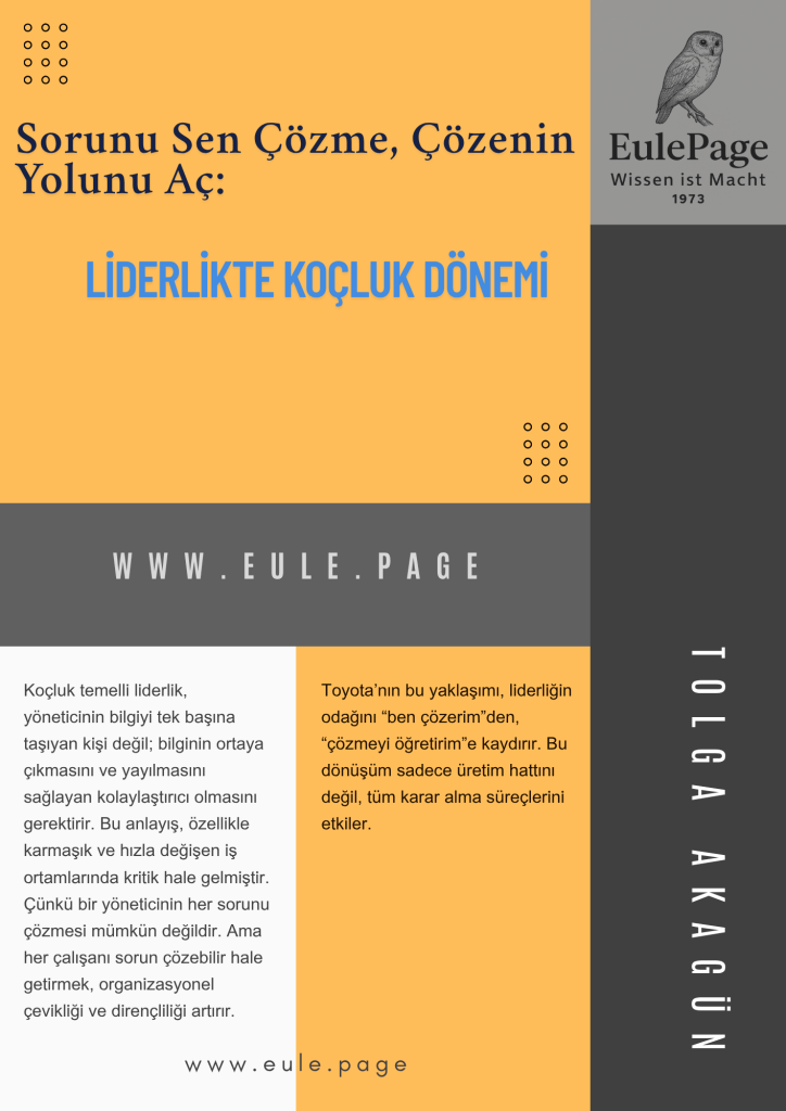 Artık liderlik, mikro-yönetimle değil; mikro-koçlukla anlam kazanıyor. Yöneticinin görevi sorunu ortadan kaldırmak değil; çalışanı o sorunu kendi başına çözebilecek bir birey haline getirmektir. Toyota’nın yıllardır başarıyla uyguladığı bu model, sürdürülebilir performansın, yüksek bağlılığın ve gerçek bir öğrenme kültürünün temel taşıdır.